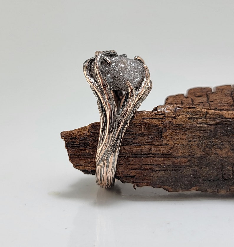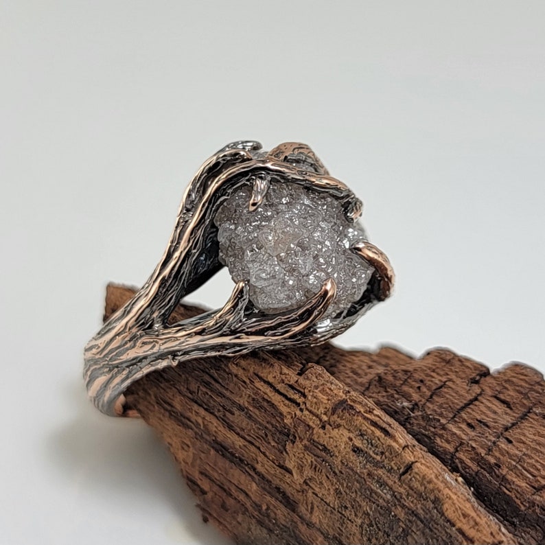 My cast-in-place technique offers unrivaled security. As the metal solidifies, it gently shrinks around the rough diamond, creating a 'hard grasp' that traditional prongs simply cannot replicate. This isn't just a setting; it's a permanent union, ensuring your treasure is held tight, forever."